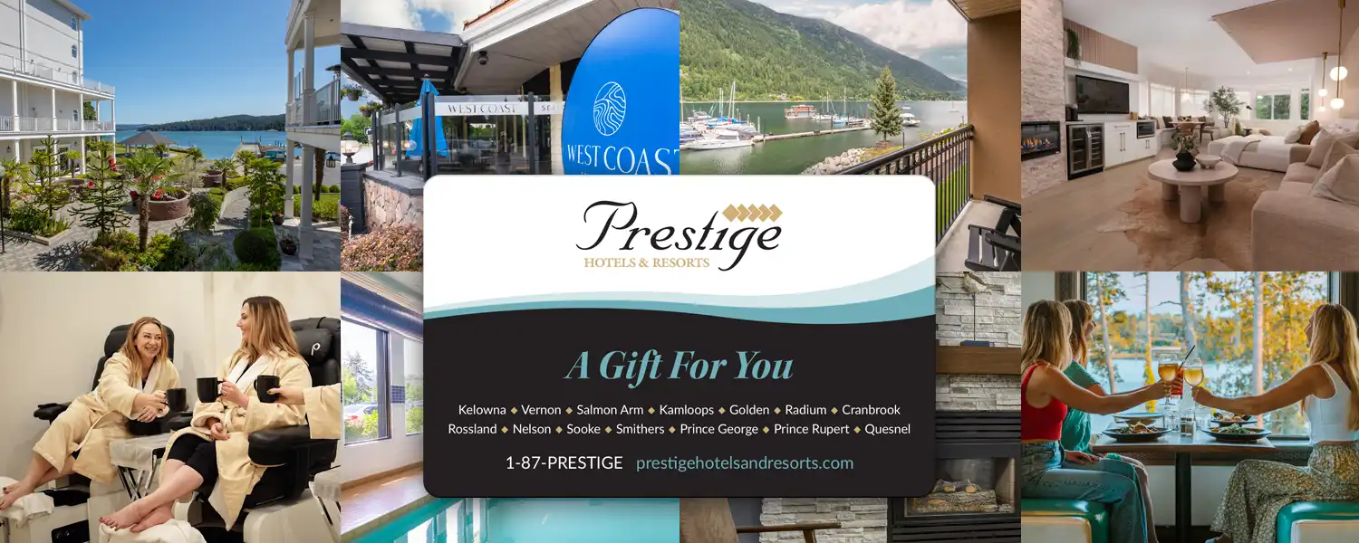 Gift cards are valid at all Prestige locations across BC and can be used toward anything charged to a guestroom, including: